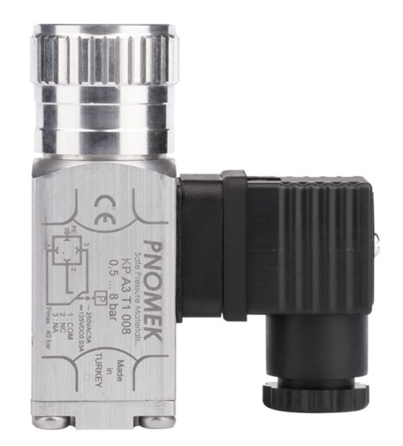 Реле давления регулируемое серия KP — это компактное устройство, в котором происходит переключение внутренних электрических контактов при достижении заданной величины давления. Величина давления устанавливается вращением рукоятки на корпусе. Выпускается с различными диапазонами регулировки от 0.2 бар до 600 бар с погрешностью ± 1%, гистерезис между 15% и 25%. Переключаемые контакты, нормально открытые (НО) и нормально закрытые (НЗ). Максимальные токи на контактах: 5A для 250В 50/60 Гц АС. Монтаж резьбовой, G1/4” (внутренняя). Срок службы: 5 000 000 циклов. Пылевлагозащита IP65, оснащен разъемом DIN 43650/A (3P+T). Корпус алюминиевый сплав. Температура эксплуатации –20… +90°С.